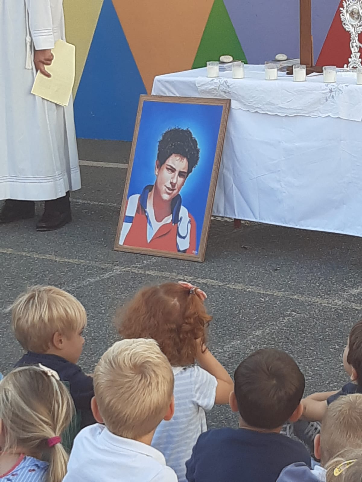 Voici quelques photos de notre début d’année ! Lancement de l’année par notre traditionnelle célébration de rentrée et bénédiction des cartables avec le Père Frédéric et quelques parents ! Nous avons confié notre communauté éducative au bienheureux Carlo Acutis, surnommé le « geek de Jésus » et canonisé le 7 septembre 2025.