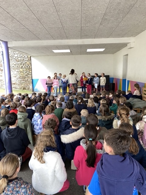 Les élèves de CM1 et de CM2 qui font de la chorale avec Mme Robinet tous les lundis, ont présenté leur travail aux autres classes. Merci à eux!