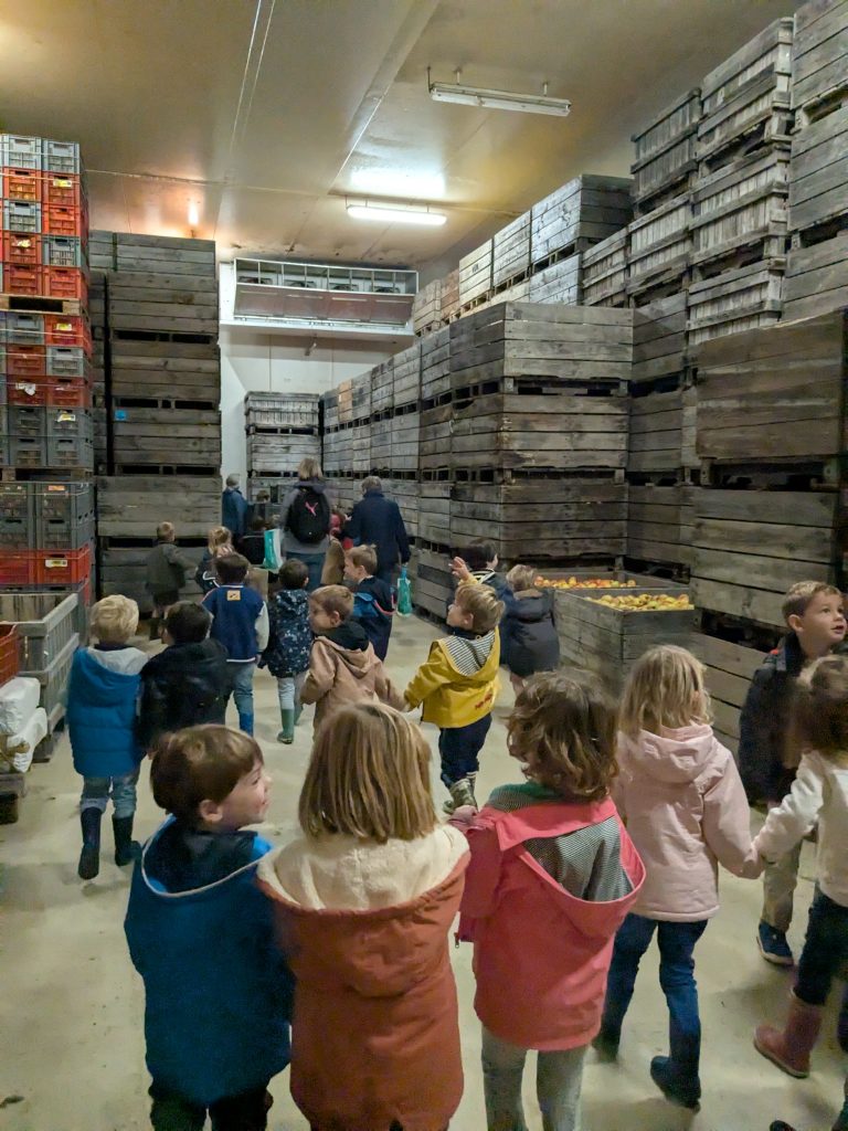 M. Gauter nous a chaleureusement accueilli (malgré la pluie !) et nous a expliqué son activité. Il nous a parlé notamment des différentes variétés de pommes, de la récolte des pommes et de leur conservation et de la pollinisation des pommiers par les bourdons. Puis, nous avons cueilli une pomme que nous avons pu croquer et nous avons dégusté un verre de jus de pomme. C’était délicieux !
