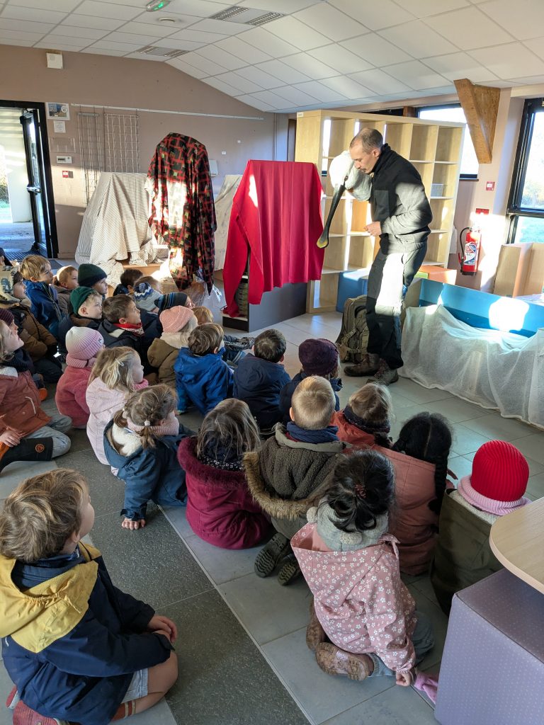 Les deux musiciens mettent en scène ce conte grâce à divers instruments et composent des thèmes musicaux pour chaque personnage de l’histoire, à la manière de Pierre et le loup. Les enfants ont beaucoup apprécié ce moment poétique !