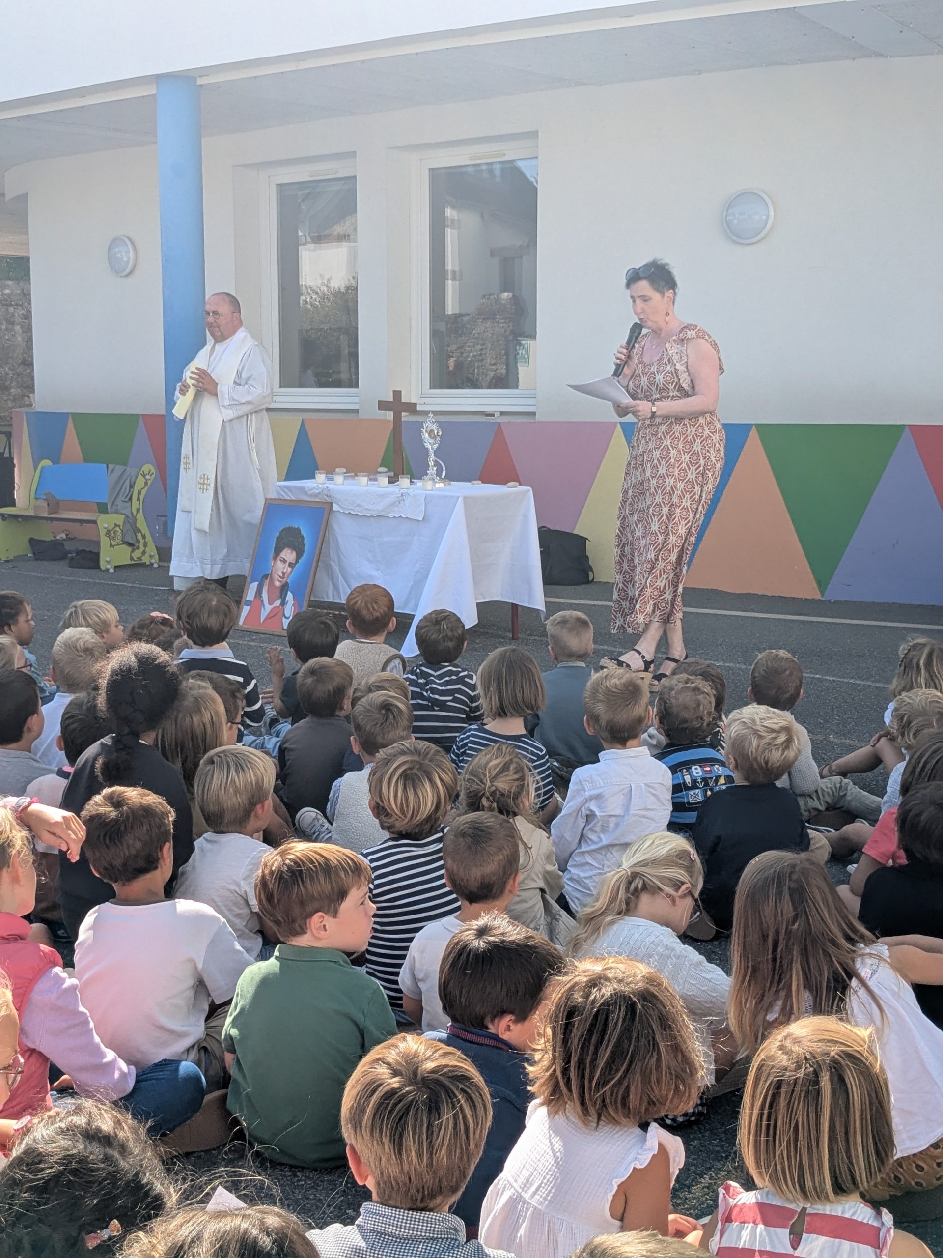 Le vendredi 9 septembre, le père Etienne Portalis est venu à l’école pour célébrer la rentrée avec tous les élèves. Nous avons rendu hommage à la bienheureuse Pauline Jaricot qui a été béatifiée en mai dernier.